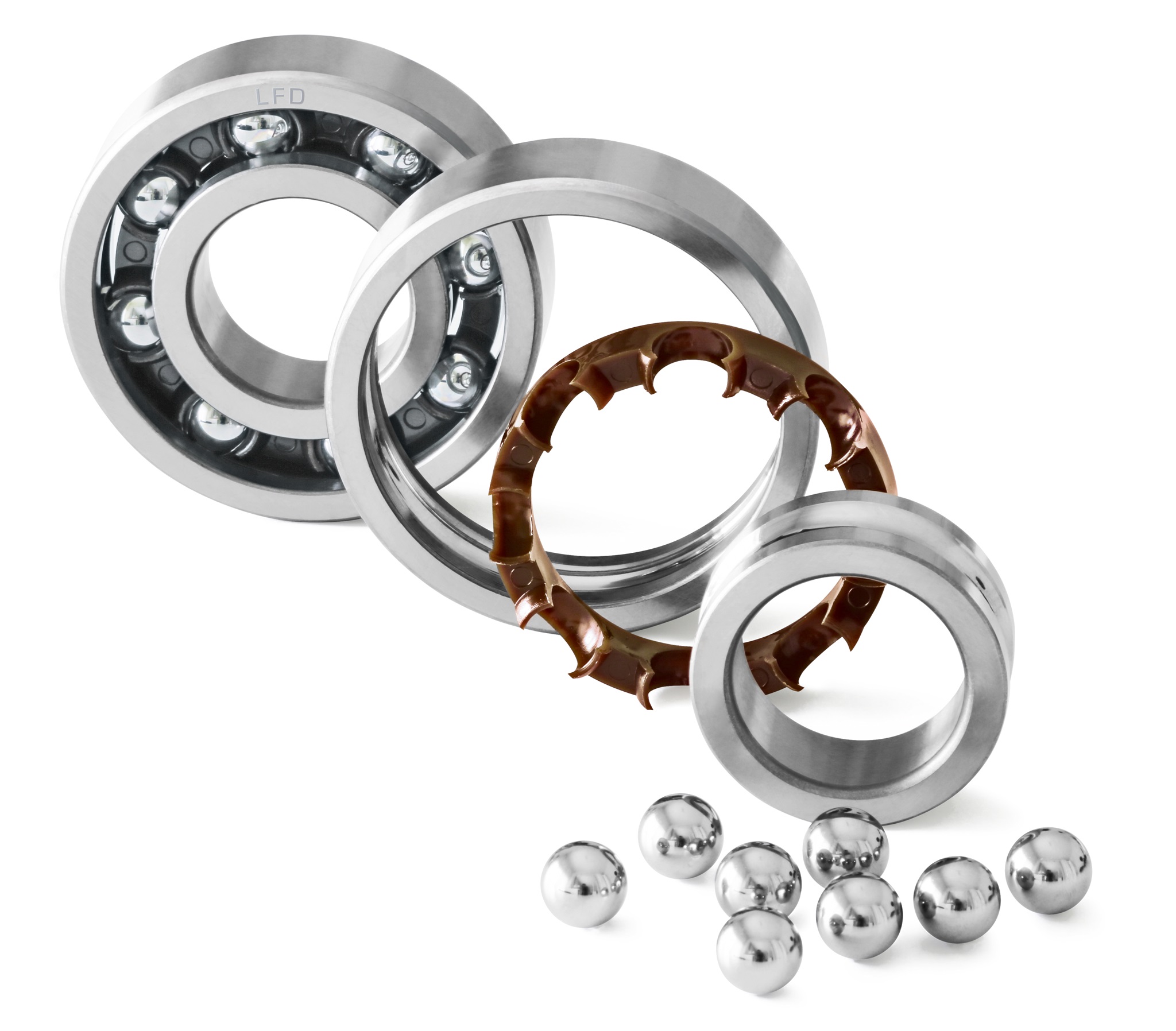 LFD verwendet hochreine, und gegebenenfalls rosthemmende oder säurebeständige Wälzlagerstähle. Die hohe Güte der weiteren Komponenten wie Ringe, Käfige und Kugeln sind ebenso qualitätsrelevant wie die anwendungsoptimierte Auswahl von Hochleistungsschmierstoffen. Eine Tragzahloptimierung führt mit großen Kugeln zu höheren radialen Tragfähigkeiten. Erreichbar ist so eine bis zu 50% höhere Lebensdauer. Ein besonders homogenes Gefüge der hochreinen Stähle trägt ebenfalls zu hohen Tragzahlen bei.